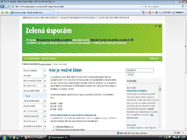 Žádost, Seznam příloh § Vyplnit silně orámované části žádosti – každá žádost má jiný vzor. Žádost a její přílohy podáváte na pobočce banky, která je zapojena do programu (viz www. zelenausporam. cz, sekce Kde je možné žádat). § Projektovou dokumentaci včetně Seznamu povinných příloh si musíte nechat nejprve zkontrolovat na krajském pracovišti SFŽP. § Seznam povinných příloh k příslušné žádosti najdete na www. zelenausporam. cz, sekce Dokumenty ke stažení)