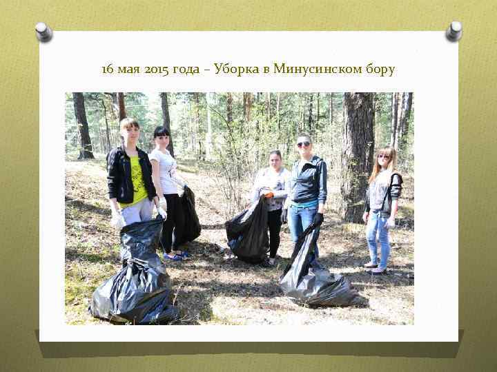За весну и лето 2014 года из Минусинского бора было вывезено 14 самосвалов мусора, собранных добровольцами нашего движения