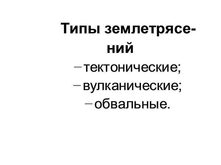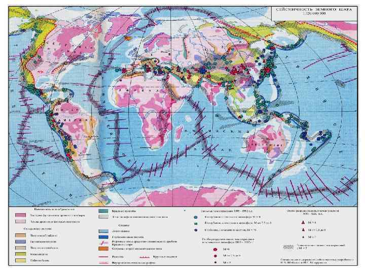 Географическое распространение землетрясений 1. Тихоокеанский пояс (80% сейсмической энергии) – 95% землетрясений 2. Альпийско-Гималайский пояс (Альпы, Пиренеи, Апеннины, кавказ, Крым, Турция, Афганистан, Гималаи) 3. Срединно-океанические хребты Причины – Эндогенные и Экзогенные