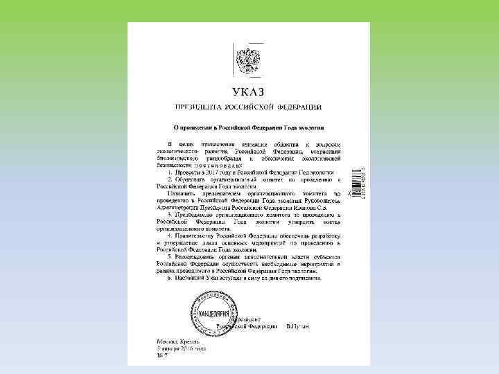 Указ Президента Российской Федерации от 5 января 2016 г. № 7 "О проведении в Российской Федерации Года экологии" Пункт 46 в плане основных мероприятий по проведению «Года экологии» • Разработка и внедрение системы сбора ртутьсодержащих отходов, отработанных источников малого тока (батареек) у населения.