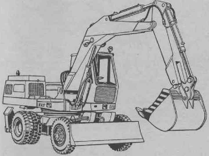 Екскаватори, обладнані драглайном, мають стрілу великих розмірів і ківш на гнучкій підвісці. Застосовують для розроблення кар’єрів, виїмок значних розмірів вивантаженням ґрунту у відвал або транспортні засоби. Глибина копання може досягати 20 м, найбільший радіус копання на рівні стоянки – 20 м. Екскаватори, обладнані грейдерами, застосовують для розроблення котлованів під окремо розміщені споруди, колодязі, окремих фундаментів, опор ліній електропередач