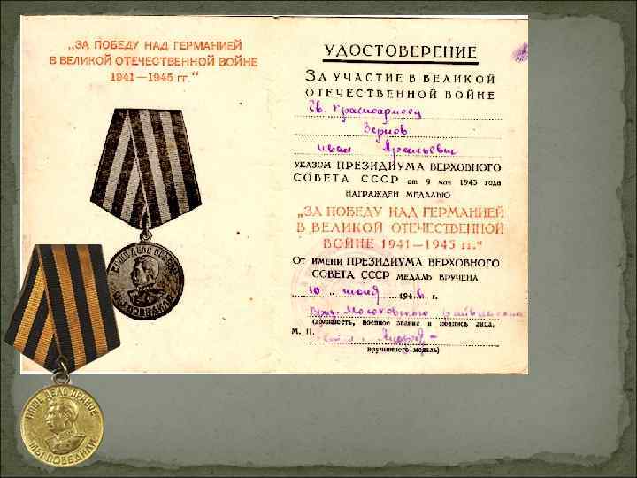 Мой прадедушка был дважды награжден медалями «За отвагу» , одна была получена за бои под Сталинградом, а второй награжден за то, «что минометный расчет, в составе которого работал тов. Зернов, подавил один станковый пулемет противника» выписка из приказа № 116 06. 11. 1944 г. 2 й Украинский фронт.