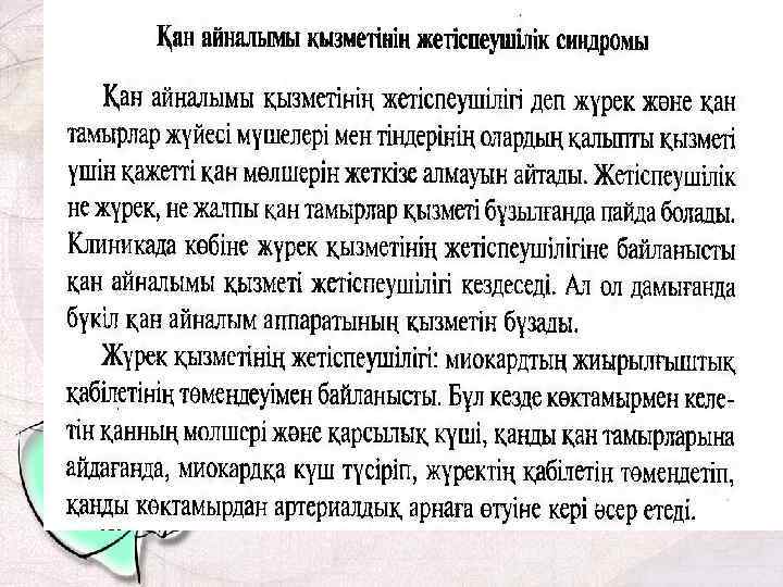Жүрек қантамыр жүйесі ауруларының негізгі синдромдары Орындаған: Байларова Ақбота Қабылдаған: Оспанова Ш. М