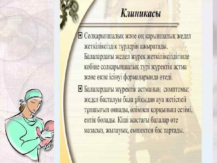 Пайдаланылған әдебиеттер тізімі: 1. Шабалов. “Детские болезни II том” 2. Хабижанов Б. Х. , Хамзин С. Х “Балалар аурулары” Алматы 1997 3. Нұрмұхаметұлы А. Н. “Патофизиология” Алматы 2000 4. Айтпембет Б. Н. “Ішкі ағза ауруларының пропедевтикасы” Алматы 2005 5. www. vikepedia. ru Интернет сайттары • www. googlr. kz • www. google. ru
