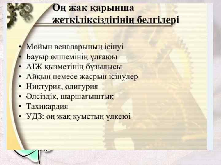 Артериалды гипертензия синдромы 2. Эндокринды ауруларда А. Иценко – Кушинга синдром Б. тиреотоксикоз В. Феохромацитома Г. Альдостерома 3. Бүйрек ауруларында А. Гипоплазия Б. Поликистоз В. Гломерулонефрит Г. Пиелонефрит