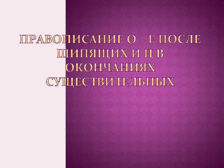 - познакомиться с правилом о написании О – Е после шипящих и Ц в окончаниях существительных - научиться писать слова с данной орфограммой