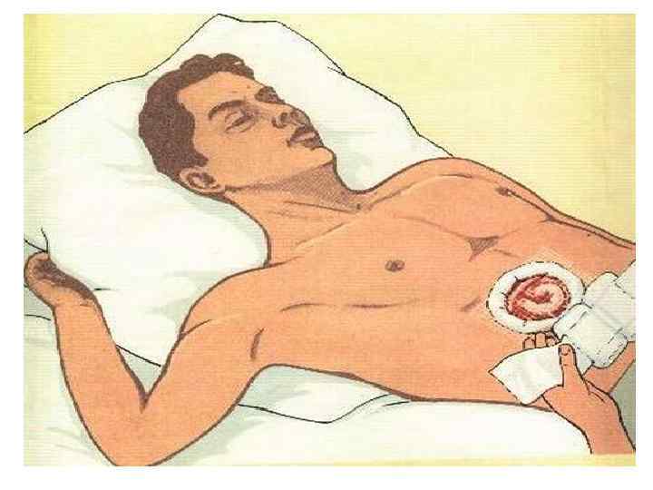Жедел жəрдем көрсету тактикасы • • 1. Асфиксияның көзін жою жəне алдын алу-ауыз қуысындағы бөгде заттардан жəне мұрын қуысындағы қан ұйындыларынан тазарту. 2. Іш перде жарақаты бар кездегі ассептикалық танбалар. 3. Іштің ашық жарақаты кезіндегі геморрагиялық шок белгілері, интроперитональды көп мөлшердегі қан кетуге күдіктену керек: омыртқаға қарай іш пердесінің алдыңғы қабырғасын екі алақанмен күштеп басу; көмекші бір алақанын содан екінші алақанын ауыстырып, алақан астына іштің алдыңғы бетіне сəкес келетін жұмыр затты салады (фанера, кітап) содан кейін қойылған затты ременмен денені айналдыра фиксациялау керек. 4. Іш перд шарбы майы жəне ішектің ілмегі жарақаты арқылы енген эвентрациясы кезінде құрсақ қуысынан шыққан мүшелерді орнына қайтадан қоймайды, тек бірнеше қабатты ылғалды стерильді таңғыштармен қатты тартпай денесіне айналдыра фиксация жасайды. 5. Кең көлемді құрсақ қуысы мүшелерінің эвентрациясы кезінде (2 мл - 0, 005% фентанил ерітіндісінен кейін, 1 мл-0, 1% атропинді енгізу) құрсақ қабырғасының ақауынын шетін көмекші екі қолмен ұқыптап ашып, сыртқа шығып кеткен мүшелерді құрсақ қуысына салып қоюға тырысады да бинтпен қатты тарпай денесіне асептикалық айналдыра таңғыш салады. 6. Ішек ілмегінің бір бөлігі құрсақ қабырғасынан шығып кетуі немесе қысылуы болса ( 2 мл - 0, 005% фентанил ерітіндісінен кейін 1 мл-01% ерітіндісін еңгізу) қысылуды болдырмау үшін кішкене тілім жасау керек. 7. Қабырғадан шығып кеткен мүше болған жағдайда, аталған мүшені кішкене көтеріп құрсақ қуысына, мүшелердін ары қарай еніп кетпеуі үшін асептикалық таңғышпен таңу керек. 8. Жансыздандыру: 2 мл - 0, 005% фентанил ертіндісінен кейінгі 1 мл - 0, 1% атропин ерітіндісін енгізу.