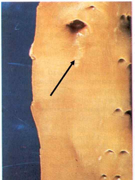 Макроскопиялық өзгерістер 1. Майлы дақтармен сызықтар – беткей интимасынан аспайтын сызықтар түзіледі, олар сары, сары-сұрғылт түсте.