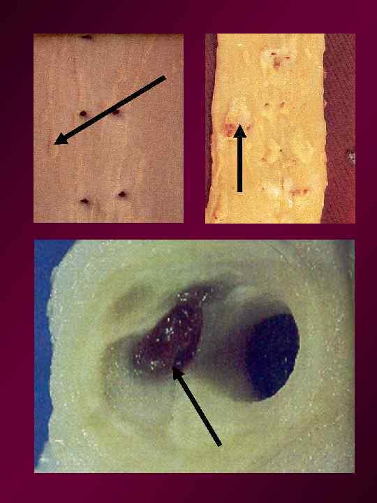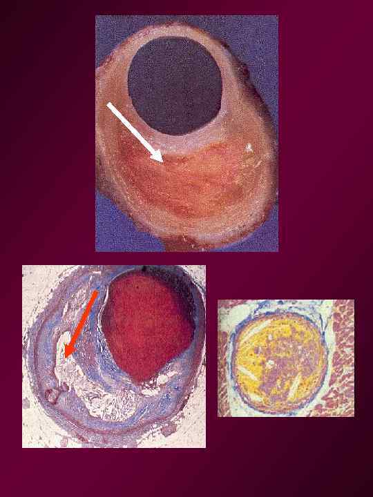 • 3. Асқынған зақымданулар: • Фиброзды табақшалар жарамен (атероматозды жара) • Табақшалардың ішіне қан құйылу (интрамуральды гематома) • Табақшаларға жиналған қанға тромбтардың түзілуі.