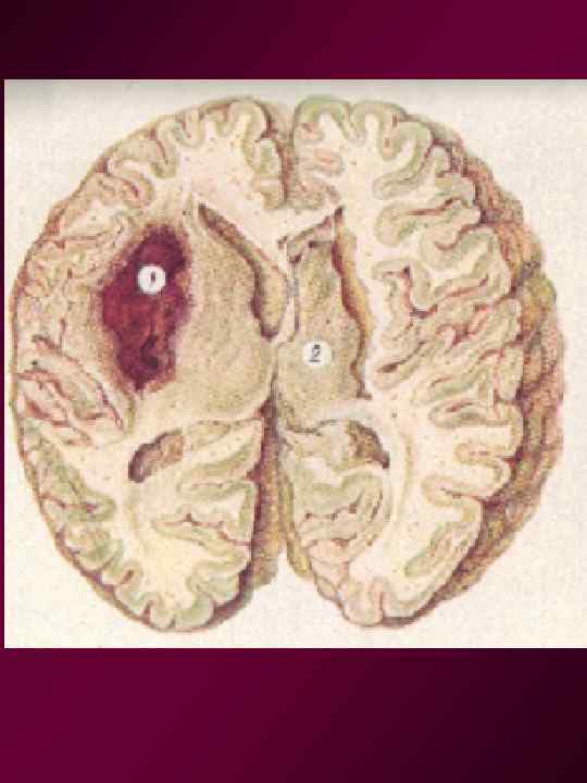 Макроскопиялық өзгерістер • Бүйрек – тегіс не түйіршікті болуы мүмкін (қатерсіз гипертензияның ұзақтығы мен ағымына байланысты ) • Бүйрекке шұбар тур беретін петихиалды қан құйылулар мен сипатталады (почка Фара) • Тез дамитын бүйрек жеткіліксіздігі және өлім • Бас миы– артериолалардың фибриноидты некрозы, ісіну, геморрагия.