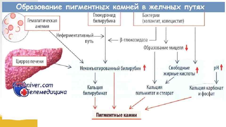 Желчнокаменная болезнь (ЖКБ) • дистрофически-дисметаболическое заболевание гепатобилиарной системы, обусловленное нарушением обмена холестерина и/или билирубина и характеризующееся образованием конкрементов в желчных путях. [4] * Союз педиатров России • Желчнокаменная болезнь (холелитиаз) — обменное заболевание гепатобилиарной системы, характеризующееся образованием желчных камней в желчном пузыре (холецистолитиаз), реже — в желчных протоках Проф. А. А. Призенцов (холангиолитиаз). • Мультифакториальное наследственное детерминированное заболевание печени, в основе которого лежит нарушение процессов желчеобразования с формированием конкрементов в желчном пузыре и/или желчных протоках, исходом которого является склероз и дистрофии. [2] Проф. Н. П. Шабалов.