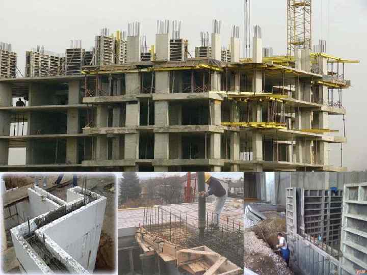 Монолитные железобетонные конструкции, выполняемые непосредственно на строительных площадках, обычно применяются в зданиях и сооружениях, трудно поддающихся членению, при нестандартности и малой повторяемости элементов и при особенно больших нагрузках (фундаменты, каркасы и перекрытия многоэтажных промышленных зданий, гидротехнические, мелиоративные, транспортные и др. сооружения)