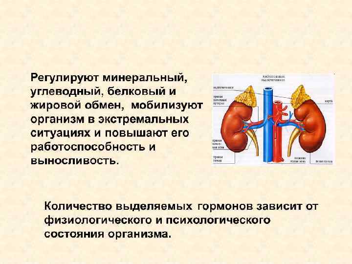 Наружный слой (корковый) Внутренний слой (мозговой) • кортикостероиды: • адреналин минералокортикоиды, • норадреналин глюкокортикоиды. • андрогены и эстрогены