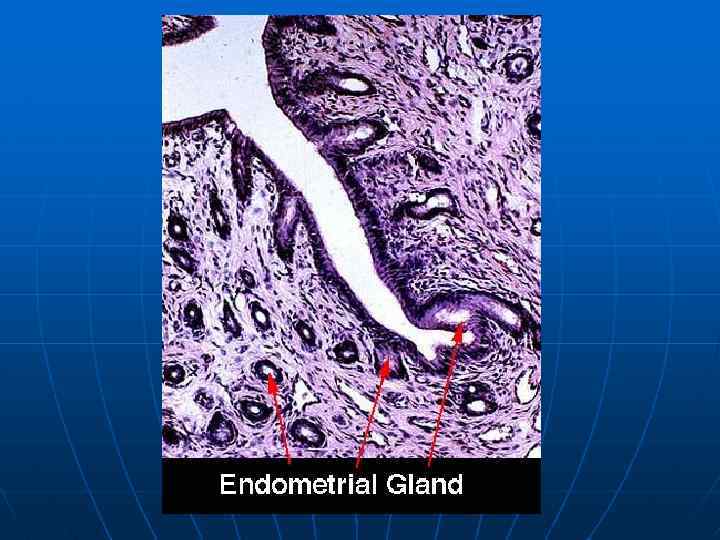 Механизм менструации • К концу полового цикла складывается ситуация, получившая название “гормональное безвластие”; сущность ее заключается в понижении концентрации в крови как эстрогенов, так и прогестерона (причина: инволюция желтого тела и отсутствие зрелых фолликулов). • “Гормональное безвластие” → спазм гладкой мускулатуры сфинктера → ишемия функционального слоя эндометрия → гипоксия → некроз тканей и изменение их химизма → расслабление сфинктера → прилив крови → кровотечение и отторжение функционального слоя → удаление из матки.