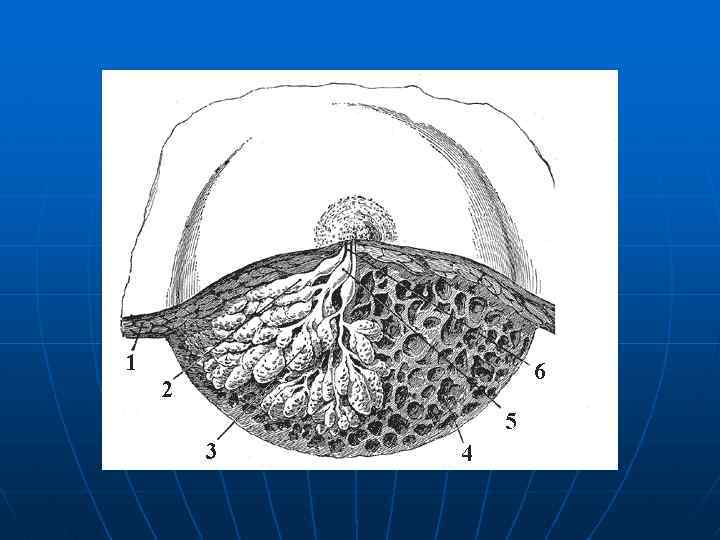 • Каждая доля состоит из долек, разделенных соединительнотканной и жировой тканями; дольки образованы множеством железистых концевых отделов (альвеол) и ветвящимися выводными протоками; альвеолы и почти все протоки выводящей системы выстланы однослойным эпителием и покрыты футляром из миоэпителиальных клеток. • Секреторными элементами железы являются лактоциты, образующие выстилку альвеол и начальных звеньев выводной системы - молочных ходов. • Система выводных протоков: молочные ходы → внутридольковые протоки → междольковые протоки → молочные синусы → протоки долей → протоки соска → воронкообразное углубление соска.