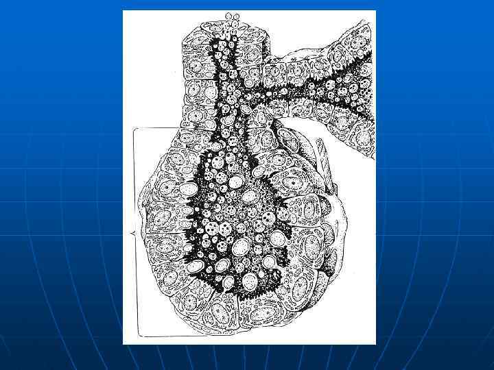 ТРЕТИЧНЫЙ (ПУЗЫРЧАТЫЙ) ФОЛЛИКУЛ Морфология: Овоцит + блестящая оболочка + многослойная фолликулярная оболочка (с полостью) + двухслойная соединительнотканная тека В конце данной стадии носит название «предовуляторный» ; характерно: • большие размеры • единая полость • фолликулярная оболочка формирует лучистый венец (вокруг овоцита), яйценосный бугорок и гранулезу • к моменту овуляции овоцит останавливает свое развитие в метафазе II