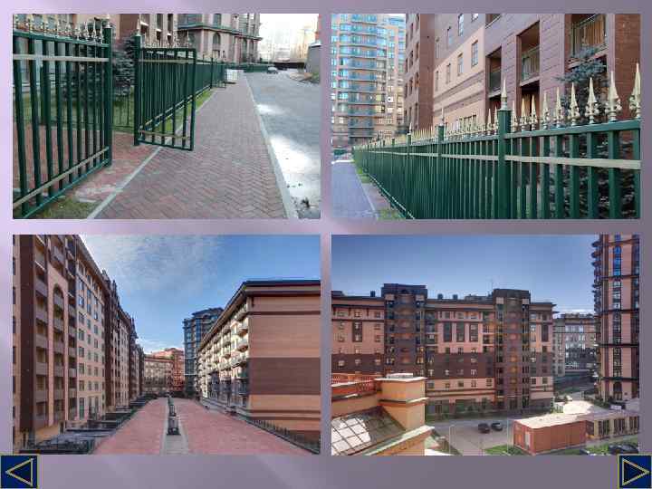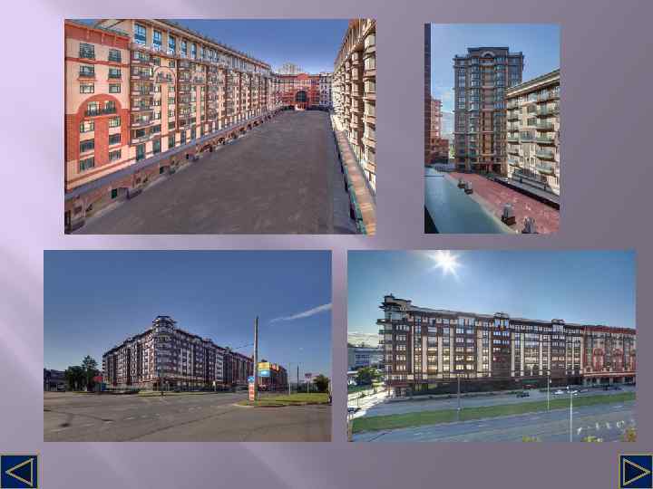 - Жилая часть комплекса состоит из 7 корпусов, фасады которых выполнены в едином архитектурном неоклассическом стиле. - На первом этаже всех зданий расположены коммерческие помещения. - В комплексе предусмотрен паркинг на 150 машин, также для парковки доступны места во внутреннем охраняемом дворе. - Территории ЖК и каждого дома по отдельности будет ограждена, высажены ели, на стилобате подземной парковки разбит английский сад. - Для детей организуют игровую площадку. - Предусмотрена охрана и служба консьержей на первом этаже.