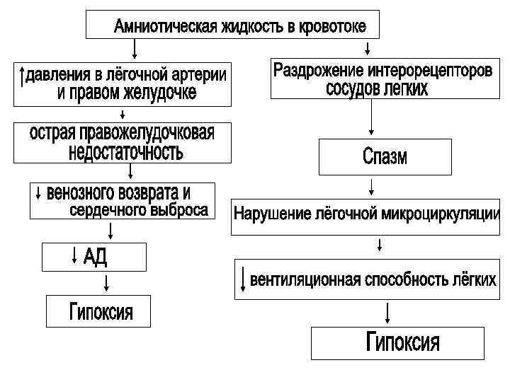 Эмболия околоплодными водами • Источник: Проникновение околоплодных вод в материнский кровоток Околоплодные воды содержат: • большое количество различных биологически активных веществ (мукопротеиды, липиды, белок, гормоны, гистамин, профибринолизин и тромбокиназоподобные вещества, цитокины и эйкозаноиды, ПГ); • продукты белкового и жирового метаболизма; • различные механические примеси (чешуйки эпидермиса, эмбриональные пушковые волосы).