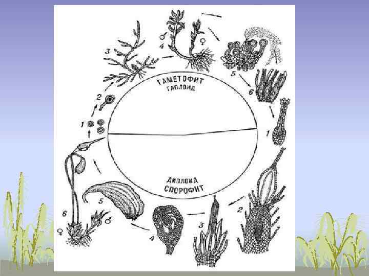 Життєвий цикл – період між одними фазами розвитку двох чи більшої кількості однакових поколінь. Він забезпечує безперервність життя. Cпорофіт (нестатеве покоління) – спорангії (нестатеві органи) – спори (нестатеві клітини). Гаметофіт (статеве покоління) – гаметангії (статеві органи) – гамети (статеві клітини).