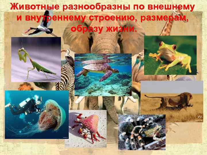 Животные разнообразны по внешнему и внутреннему строению, размерам , образу жизни.