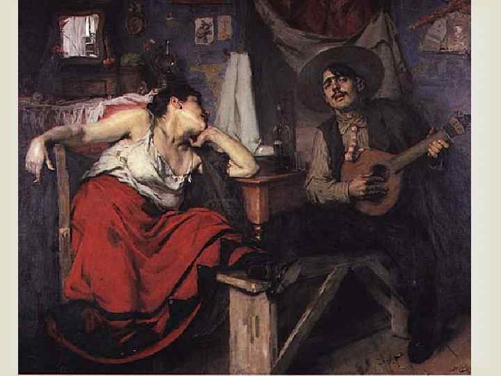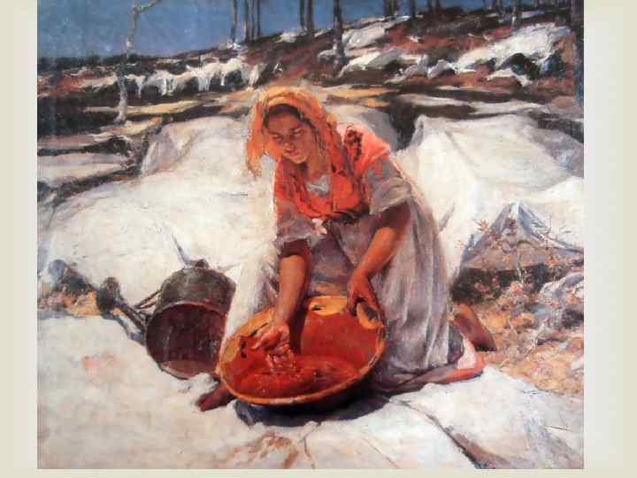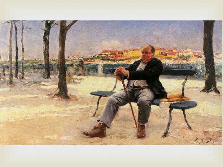 José Malhoa (1855 -1933) Жозе Мальоа принадлежит к популярнейшим художникам Португалии. В его картинах отражена жизнь португальцев в самых разных ее проявлениях. Он показывал людей и в моменты отдыха, и в забытьи от страсти или вина, и во время нелегкого труда. Он предпочитал натурализм, т. е. живописную манеру, которая отражает жизнь максимально объективно. Порой Мальоа обвиняли в копировании различных стилей, эпох, однако он экспериментировал, желая отыскать собственную манеру. Позднее он склонился к импрессионизму, позволившему автору улавливать и выражать мельчайшие эмоции и оттенки чувств.