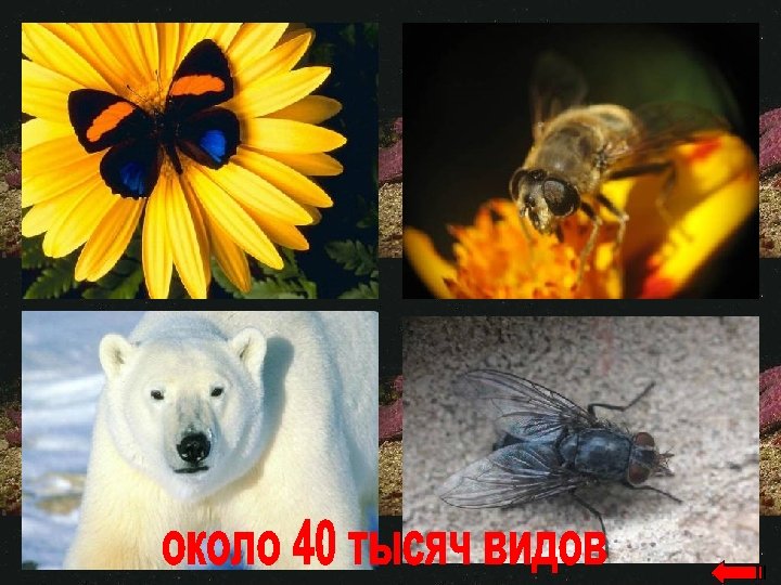 НАСЕКОМЫЕ представители - жуки; - бабочки; - стрекозы; - пчёлы; - мухи. признаки группы Наличие пары усиков, трёх пар ног и трёх отделов тела: головы, груди и брюшка. Распространены повсеместно, кроме морской воды (иск. – морские водомерки). Самая многочисленная группа, насчитывает около 1. 000 животных.