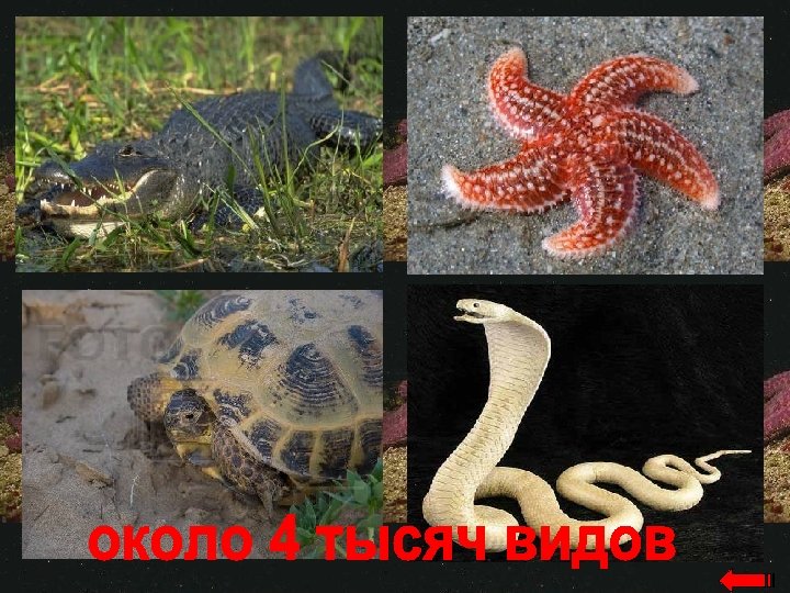 ПРЕСМЫКАЮЩИЕСЯ представители - ящерицы; - змеи; - черепахи; - крокодилы. признаки группы Тело покрыто сухими чешуйками или панцирем. Класс содержит около 7. 000 видов.