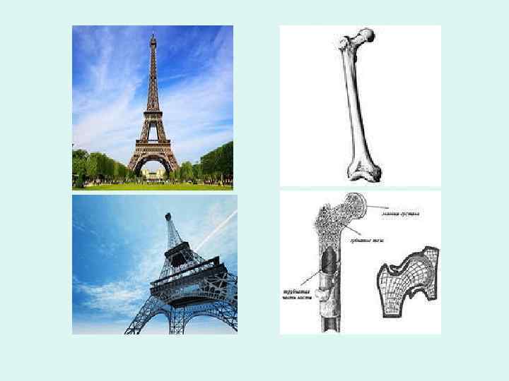 В конце ХIХ столетия башня, названная именем своего создателя, поразила весь мир ажурностью и красотой. Ходили слухи, будто бы построена башня по чертежам неизвестного арабского ученого. И лишь спустя более чем полстолетия биологи и инженеры сделали неожиданное открытие: конструкция Эйфелевой башни в точности повторяет строение головки бедренной кости, легко выдерживающей тяжесть человеческого тела. Совпадают даже углы между несущими поверхностями. Это ещё один показательный пример бионики в действии.