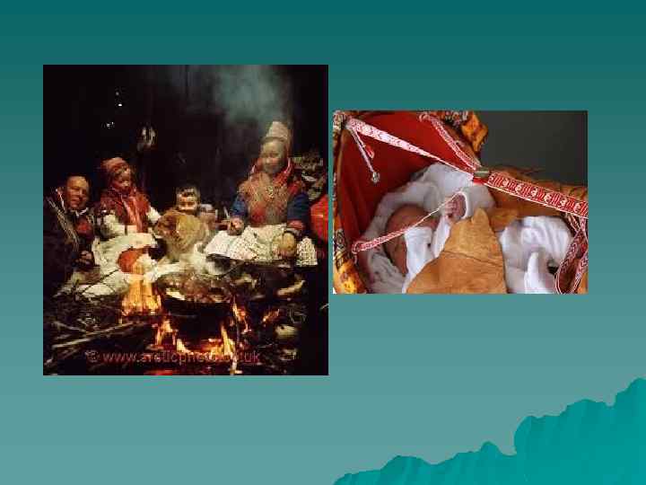 Рождение и воспитание u Рождение и воспитание детей. Саамы с большой любовью относятся к детям. Все авторы, писавшие когда-либо об этом народе, отмечали стремление саамов иметь потомство. И если семья оставалась все-таки бездетной, это считалось большим позором и воспринималось как . наказание за какие-либо совершенные в прошлом грехи Наиболее опасным, по представлениям саамов, был период от рождения до появления первого зуба - период, когда ребенка мог подменить злой дух. С появлением первого зуба опасный период кончался (Bernatzik, 1995. S. 95). По этому поводу ребенку в качестве оберегов повязывали на шею платок и на талию льняную повязку. Было распространено также представление, что если ребенок родился с зубом во рту, то он может стать позже шаманом. Саамские дети, особенно маленькие, пользовались и пользуются в семье довольно большой свободой поведения. Им почти не делают замечаний, а они в свою очередь ведут себя спокойно и почти лишены каких-либо капризов. В прошлом все полезные знания и навыки дети получали от своих родителей, причем отец больше занимался с сыновьями, а мать обучала дочерей