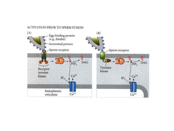 Event Approximate time postinseminationa EARLY RESPONSES Sperm-egg binding 0 sec Fertilization potential rise (fast block to polyspermy) within 1 sec Sperm-egg membrane fusion within 6 sec Calcium increase first detected 6 sec Cortical vesicle exocytosis (slow block to polyspermy) 15 - 60 sec LATE RESPONSES Activation of NAD kinase starts at 1 min Increase in NADH and NADPH starts at 1 min Increase in O 2 consumption starts at 1 min Sperm entry 1 - 2 min Acid efflux 1 - 5 min Increase in p. H (remains high) 1 - 5 min Sperm chromatin decondensation 2 -12 min Sperm nucleus migration to egg center 2 - 12 min Egg nucleus migration to sperm nucleus 5 - 10 min Activation of protein synthesis starts at 5 -10 min Activation of amino acid transport starts at 5 10 min Initiation of DNA synthesis 20 - 40 min Mitosis 60 - 80 min First cleavage 85 -95 min