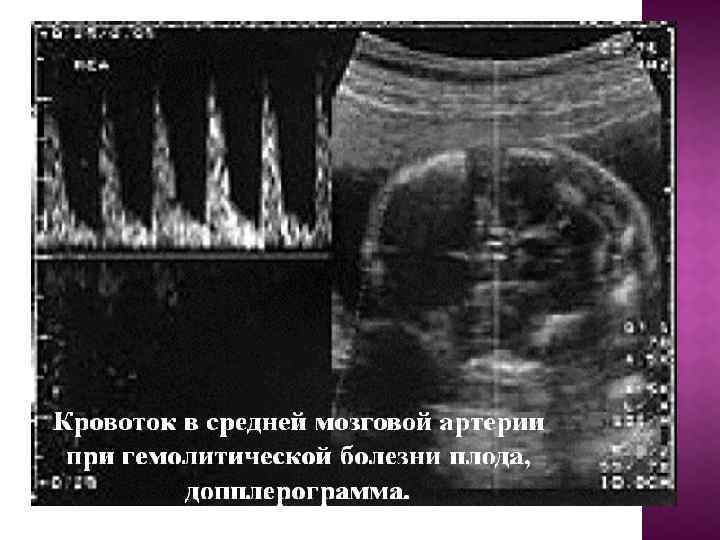 7) Ұрықтың жағдайы туралы нақты ақпаратты кордоцентез арқылы алынған фетальды қанды зерттеулер арқылы алуға болады. Жүктіліктің 24 аптасынан бастап жүргізілетін кордоцентез көрсеткіштері: — толық емес антирезустер антиденелер титрі 1: 32 және одан жоғары; — ұрық маңы суында билирубиннің оптикалық тығыздығы 0, 2 - ден жоғары — ҰГА — ның ультрадыбыстық маркерлері — ауыр акушерлік анамнез (балалардың анте-, интра- или постнатальды өлімі, гемолитикалық аурумен байланысты алмастырылып құйылатын қан құюды бастан кешірген туылған балалар). Кордоцентезге қарсы көрсеткіштер – жүктіліктің үзілу қауіпы, қан құю жүйесінің бұзылуы. Асқынулар: пункция жасалған жерден қан кету, ұрық маңы суының ерте төгілуі және плацентаның ажырауы, ұрықтың инфицирленуі және өлімі. Кордоцентез ҰГА – ын 100% бақылауда диагностикалауға, жүктіліктің ары қарай жүргізу тәсіл анықтауға мүмкіндік береді. Бұл әдіс инвазивті диагностикалық кордоцентезден ҰГА – ның қан құюға арналаған оперативті емге көшуге мүмкіндік береді.