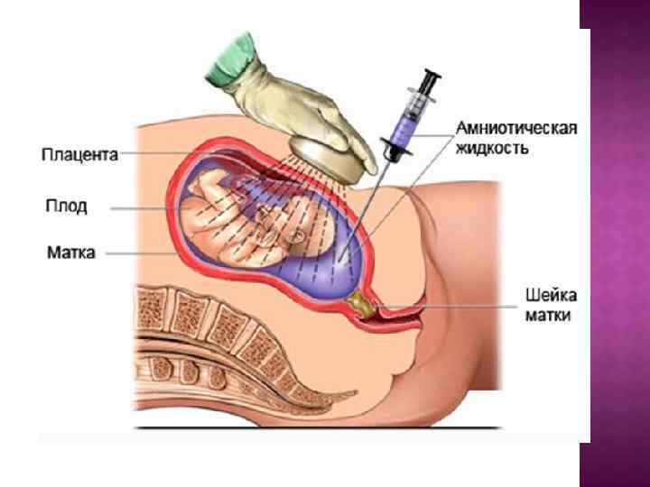 3) амниоцентез (ұрық маңы суын зерттеу). Амниоцентезге көрсеткіштер: ауыр акушерлік анамнез (гемолитикалық аурудың ауыр формаларынан ұрықтың және нәрестелердің анте-, интра – немесе постнатальды өлім); ҰГА – на байланысты алмастырылып құйылатын қан құюлар болған туылған балалар; ҰГА – ның ультрадыбыстық маркерлерін анықтау; Антиденелердің титрі 1: 16 және одан жоғары болуы. Егер АД титрі гестацияның 26 - 28 апталарында 1: 16 – 1: 32 болса, ұрық маңы суының оптикалық тығыздығын (жоғарлайды), глюкоза, белок (жоғары), эстрогендер(төмен) деңгейін анықтайды. Ұрық маңы суында билирубиннің оптикалық тығыздығын, белок, глюкоза мөлшерін, ұрықтың қан тобын, АД титрін, қышқыл –негіздік жағдайын, эстиол деңгейін, ұрықтың өкпесінің жетілуін анықтайды.