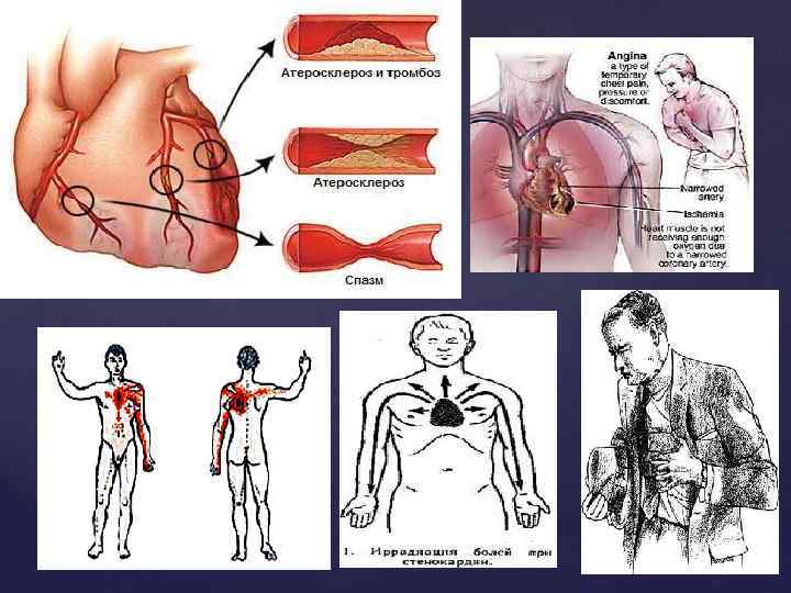 Стенокардия Миокардтың өтпелі ишемиясынын дамитын клиникалық синдром. Негізгі клиникалық көрінісі: төс артының қысып, ашып ауыруы. Ауырсыну сол иыққа, сол жауырын астына, білекке, қол ұшына, алақан бетіне таралады. Ангинальдық синдромның ерекшілігі: ұстама кезінде вегетаивтік, эмоциялық құбылыстардың болуы, үрейлену, өлімнен қорқу, терінің бозаруы, тахикардия, ентігу, аритмия, маңдайдан тер шығуы. Ұстаманы туғызатын себептер: жүгіру, баспалдаққа көтерілу, жүк көтеру. Эмоциялық факторлар, ауа райы өзгерісі, темекі тарту, салқын ас қабылдау. Стенокардия біртіндеп басталады. Кеуде қуысында жағымсыз сезімдер, сол қолдың кейде “ұюы”, тамақтың қырылы, қыжылдау, экстрасистолия, кейігіштік. Кейін ұстамалар пайда болады. Науқас нитроглицерин қабылдауға көшеді. {