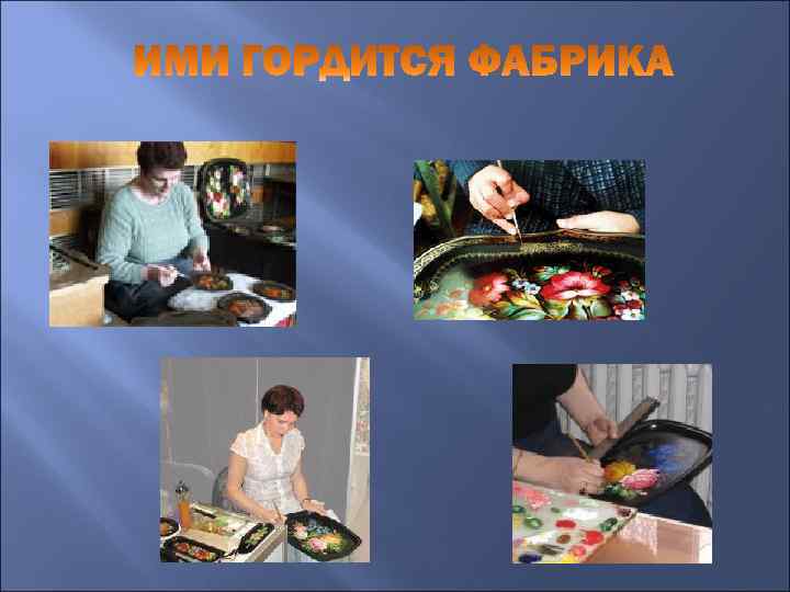 ИМИ ГОРДИТСЯ ФАБРИКА 62 года жизни Раисы Благовой связаны с промыслом. Девочкойподростком пришла она на фабрику в годы Великой Отечественной войны, здесь, теряя сознание от голода, училась у знаменитого художника Андрея Павловича Гогина, 20 лет работала художником в цехе, а в 1965 -м возглавила художественный цех.