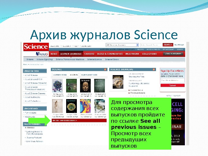 Архив журналов Science Для просмотра содержания всех выпусков пройдите по ссылке See all previous issues – Просмотр всех предыдущих выпусков