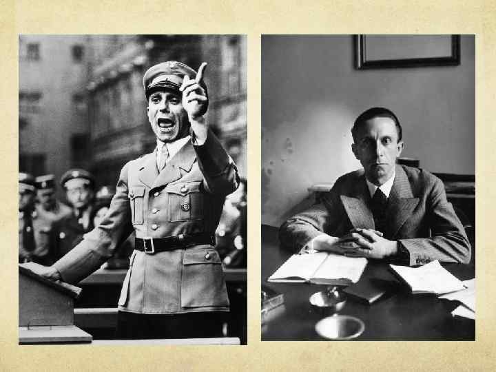 Йозеф Геббельс – рейхминистр народного просвещения и пропаганды Германии Он осуществлял неусыпный контроль над более чем 3600 газетами и сотнями журналов Германии «Ангриф» – собственная газета Геббельса В 1940 году, после падения Польши, Геббельс основал еще одно еженедельное партийное издание «Рейх» , к каждому номеру которого он писал передовую статью. Первый номер «Рейха» вышел 26 мая 1940 года, а через два номера газета тихо скончалась