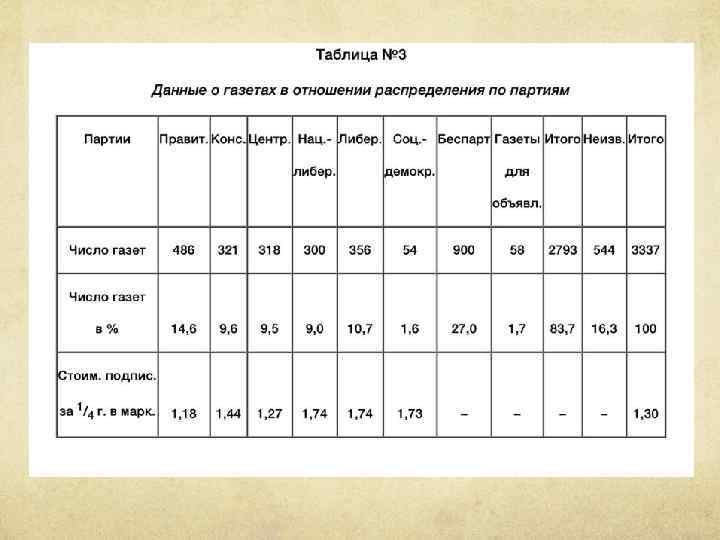 Через 10 лет после образования Германской империи в стране выходило 2437 газет, еще через 10 лет – 3005, а в 1914 году – уже 4221. Их средний тираж достигал 6 тыс. экземпляров В 1901 году в Германии выходило 3452 газеты. Из этого числа 1087 газет причисляются к различным партиям. 792 газеты сами себя называют беспартийными, остальные же умалчивают о своем партийно-политическом направлении