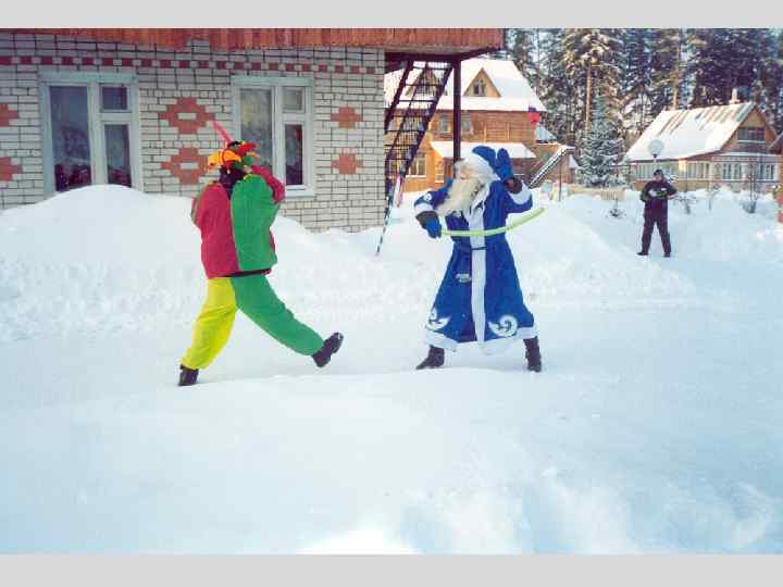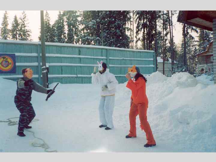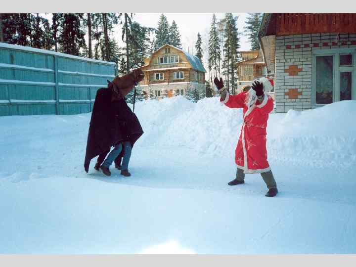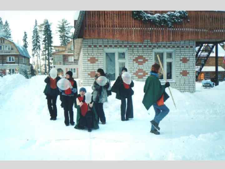 Это новогодняя (исполненная 1 января) шоу-программа на открытом воздухе для гостей международного туристского центра «Малинки» . Программу разработали преподаватели кафедры социально-культурного сервиса и туризма ИГТА и исполнили студенты этой же кафедры. Программа носила развлекательно-рекламный характер и состояла из следующих блоков: Ø Выход Деда Мороза и «духового оркестра» из овец (наступил Год Овцы), которые обнаружили свое ликование по случаю наступления «их года» . Ø Блок памяти ушедшего Года Лошади с «похоронами» старого года в виде популярного номера «Бель» из известного мюзикла. Ø Блок номеров, рекламирующих зимние радости в МТЦ «Малинки» : охота, баня, бар, шашлыки, бильярд, дискотека, зимние виды спорта, катание на лошадях и др. Ø Занятный сцена «лица фирмы» Ягодки-Малинки и «антилица» Ябедки. Калинки. Ø Конкурсы зимние забавы на хрустящем от крепкого мороза снегу. Ø Угощение – горячительные алкогольные и безалкогольные напитки, шашлыки, соленые огурчики и прочие радости русского гостеприимства.
