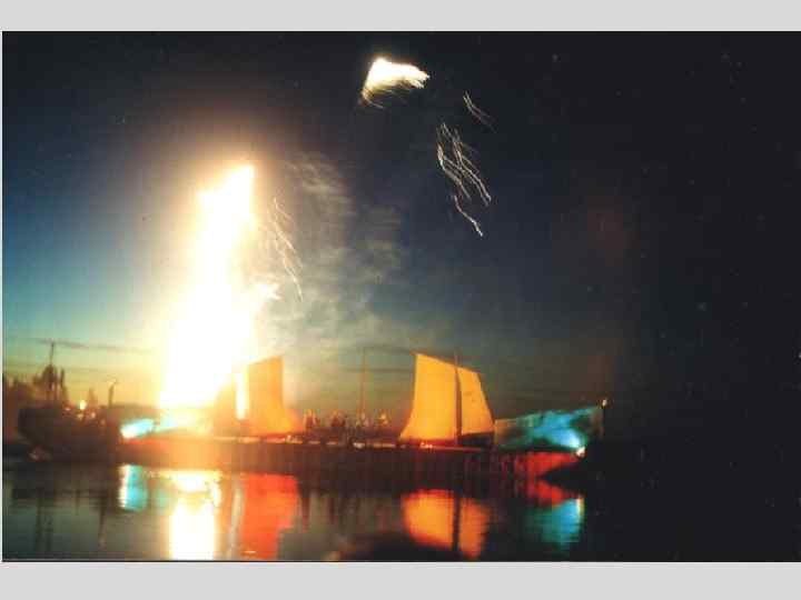 Программы у воды и на воде Программы подобного рода относятся к наиболее зрелищным Особую выразительность имеют вечерние программы у воды или на воде, ибо отражение сопутствующих вечернему зрелищу ярких огней в воде многократно усиливает зрительный эффект. Практика устройства подобных зрелищ подсказывает следующее: Ø Сцену следует устраивать непосредственно у края воды (моря, реки, озера, пруда) или прямо в воде, например на переоборудованной барже. Ø Между публикой и сценой желательно иметь водное пространство (так, у неширокой реки сцена и публика должны находиться на разных берегах). Ø Сцена вечерней программы должна иметь плоскости (паруса) для отражения сценического света. Ø Водное пространство должно быть активно вовлечено в действие, должно плыть все, что может, актеры должны играть и на воде, и в воде. Ø Желательно стилизовать используемые суда в соответствии с тематикой программы. Ø Огни на плавсредствах выглядят особенно эффектно. Ø Можно создавать «занавес» из водяных брызг, получаемых при столкновении мощных водяных струй из пожарных брандсбойтов. Ø Используемая водная стихия так хороша, что уместно включить в программу специально написанную песню о море, реке, озере.