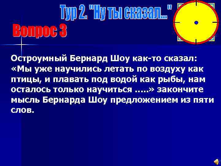 Остроумный Бернард Шоу как-то сказал: «Мы уже научились летать по воздуху как птицы, и плавать под водой как рыбы, нам осталось только научиться …. . » закончите мысль Бернарда Шоу предложением из пяти слов.