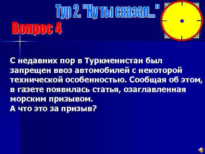 С недавних пор в Туркменистан был запрещен ввоз автомобилей с некоторой технической особенностью. Сообщая об этом, в газете появилась статья, озаглавленная морским призывом. А что это за призыв?