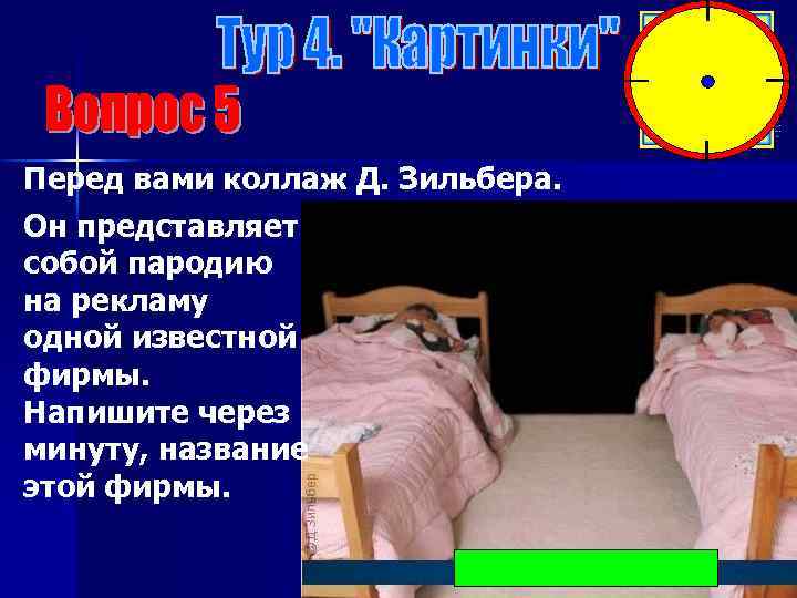 Перед вами коллаж Д. Зильбера. Он представляет собой пародию на рекламу одной известной фирмы. Напишите через минуту, название этой фирмы.
