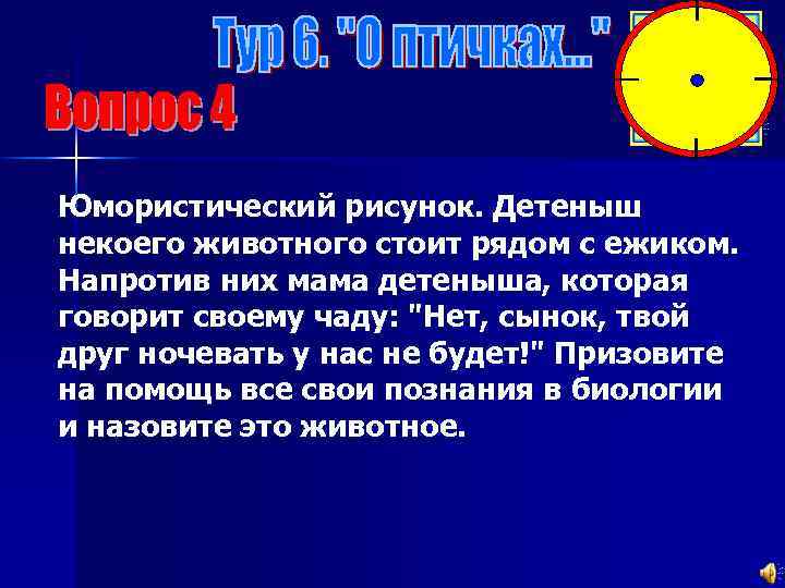 Юмористический рисунок. Детеныш некоего животного стоит рядом с ежиком. Напротив них мама детеныша, которая говорит своему чаду: "Нет, сынок, твой друг ночевать у нас не будет!" Призовите на помощь все свои познания в биологии и назовите это животное.