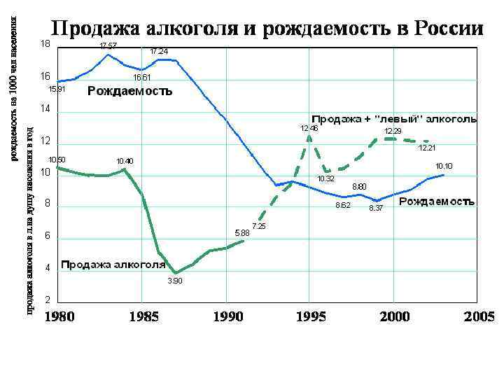 ДИНАМИКА РОЖДАЕМОСТИ И СМЕРТНОСТИ (НА 1000 ЧЕЛ. ) В РОССИИ В 1978 — 2003 ГГ.