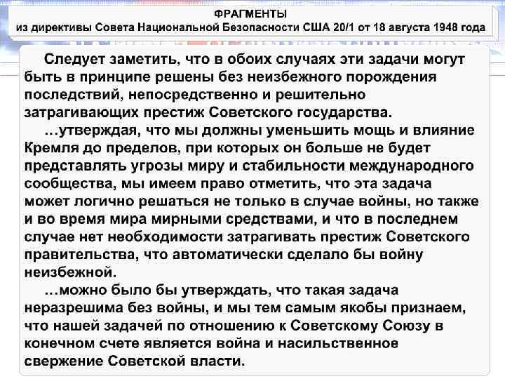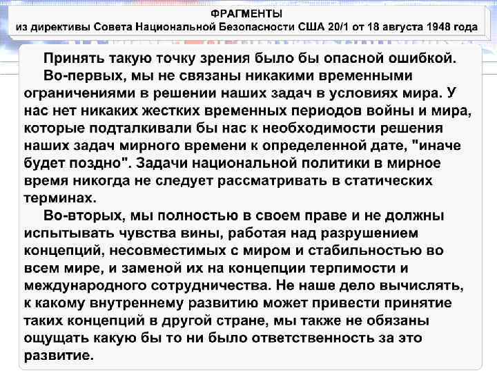 ФОТОКОПИЯ ДИРЕКТИВЫ СОВЕТА НАЦИОНАЛЬНОЙ БЕЗОПАСНОСТИ США 20/1 от 18 августа 1948 года