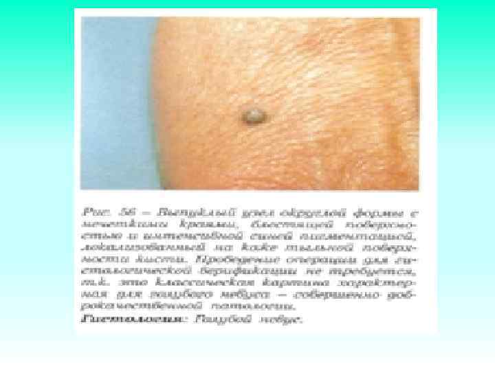 Меланомонеопасные невусы • • Внутридермальный пигментный невус Фиброэпителиальный невус Папилломатозный невус «монгольское пятно» Галоневус Себорейная кератома Гемангиома и др.
