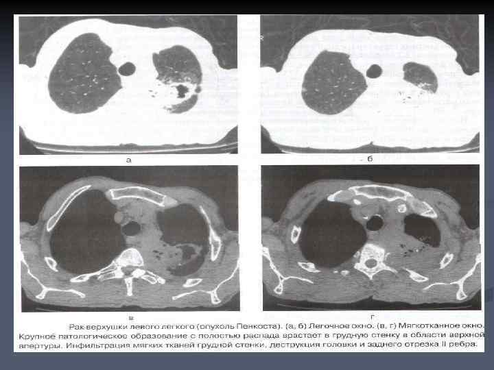 ОСЛОЖНЕНИЯ ПЕРИФЕРИЧЕКОГО РАКА ЛЕГКОГО n n n Формирование в опухоли полости деструкции; Обтурационный пневмонит (при сдавлении крупного бронха); Периферический раковый узел может достигать сегментарного или даже долевого бронха. Происходит так называемая централизация периферического рака. Это отображается сочетанием наличия округлой тени опухоли