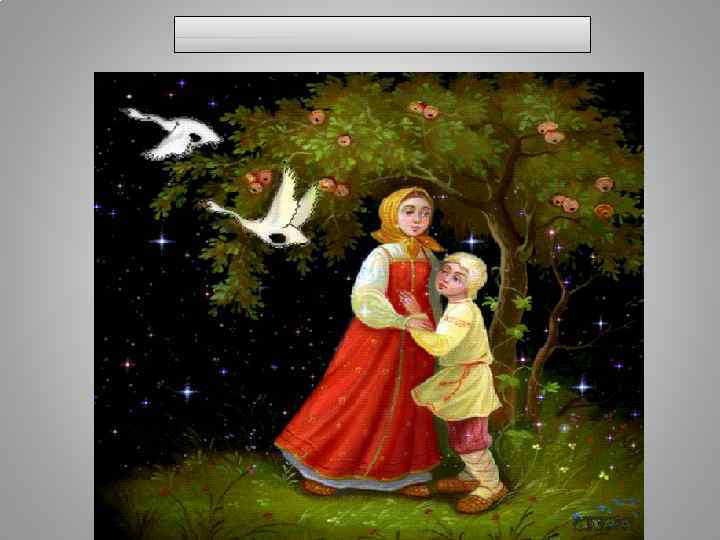 - Яблыня, яблыня, скажы куды гусі-лебедзі паляцелі ? ? А яблыня адказвае: «Сарві мае яблычкі, скажу!»