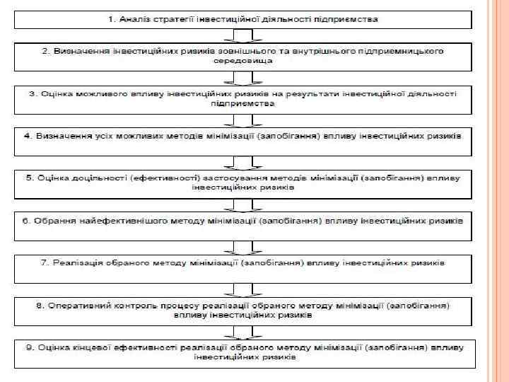 Страхування Диверсификация Розподіл інвестиційних ризиків Нейтралізація інвестиційних ризиків Хеджування