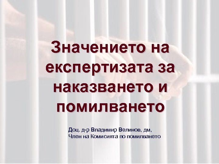 Значението на експертизата за наказването и помилването Доц. д-р Владимир Велинов, дм, Член на Комисията по помилването